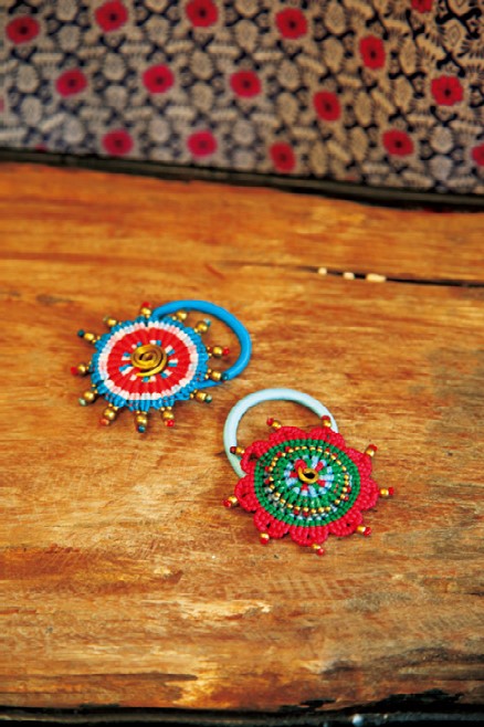 布を組み合わせたヘアゴム(各240)はとってもカラフル!帰国後もタイ気分を味わえるアイテムです。