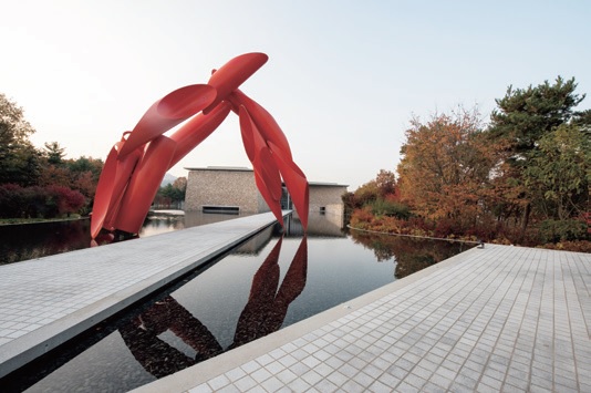 1つめに紹介するのは、建築家・安藤忠雄が設計した美術館「SAN(山)」に設置されたドーム型の瞑想館。空間美術家ジェームズ・タレルの特別展示など、見ごたえのある作品が並びます。