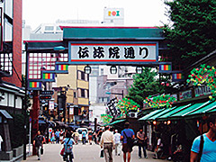 雷門から宝蔵門へと続く、250m余りの参道。雷おこしや人形焼きの銘菓店、みやげ物店などが両側に軒を連ね、毎日が縁日のような賑わいが人気。江戸時代から商いをする店も多く、下町情緒たっぷりです。東京みやげ探しのほか、ぶらぶら見て歩くだけでも◎。閉店後の「シャッター絵巻」も、新しい仲見世の見ものですね。