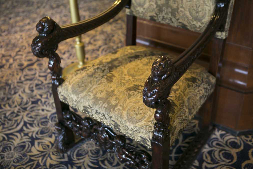 「キングズチェア」と呼ばれる椅子をよく見てみると、ひじ掛けのところに天使の顔が…。「この天使をなでると、幸せになれる」と言われているそうなので、ぜひ見つけてみてくださいね!