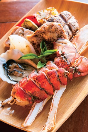 王道の「デラックスビーチサイドバーベキューディナー」$60は、ロブスターテイル、キングクラブレッグ、ビーフテンダーロイン、牡蠣、チキンなどがセットになっています。