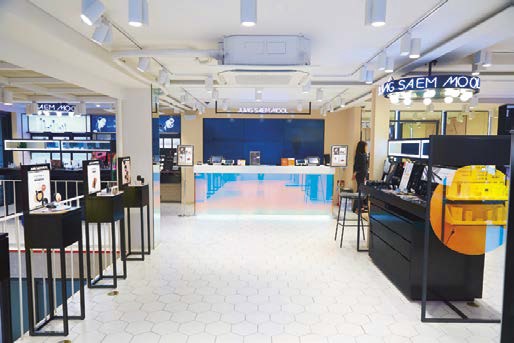韓国で絶大な人気を誇るモデルのイム・ジヒョンが手がけるブランド。クッションファンデからスキンケア商品まで、幅広いアイテムが揃います。写真は、コスメライン「VELY VELY」が並ぶフロア。