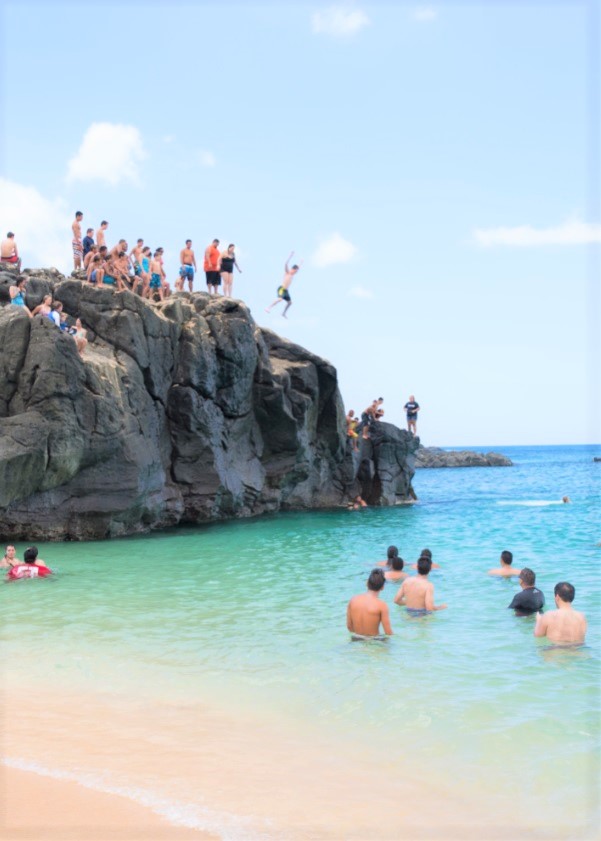 冬は大波でサーフィンの大会が行われ、夏は静かな入り江でシュノーケリングも楽しめるという、季節によって表情を変えるビーチ。湾内なのでビーチ自体は広くないのですが、木々が豊かでのんびりするにも気持ちがいい場所です。ロコたちが岩場から海への豪快ジャンプする光景も有名!