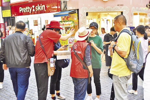 ソウル市内の主要な観光エリアで見かける赤いユニフォームの人々は、「動く観光案内所」とよばれる観光案内スタッフ。ユニフォームには各スタッフの担当する言語(英語、日本語、中国語)で「ソウル観光案内ガイド」と書かれています。ちょっと道を聞きたいときなど、気軽に声をかけて頼りましょう。