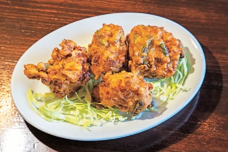 小麦粉、卵、牛乳で作った生地にエビ、キャベツ、玉ねぎなどを混ぜ合わせて揚げた「シュリンプパテ」は、幅広い年代におすすめできる一品です。$4.99。