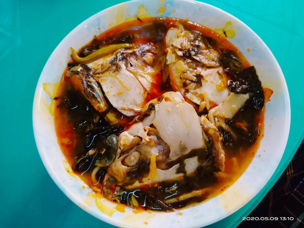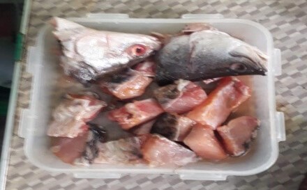 1.よく洗った鯉の頭に、塩(少々)、ターメリックパウダー(少々)、味の素(少々)を混ぜ合わせます。