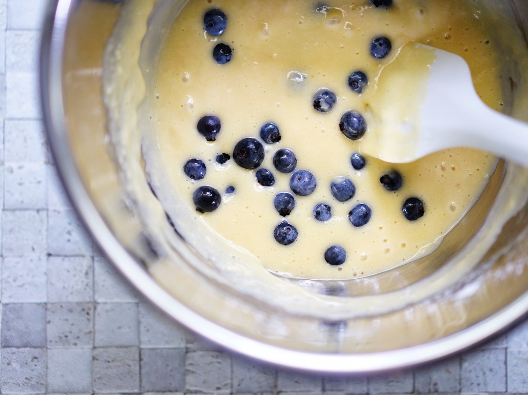 飾り用のブルーベリーを分けた残りを生地に加えます。