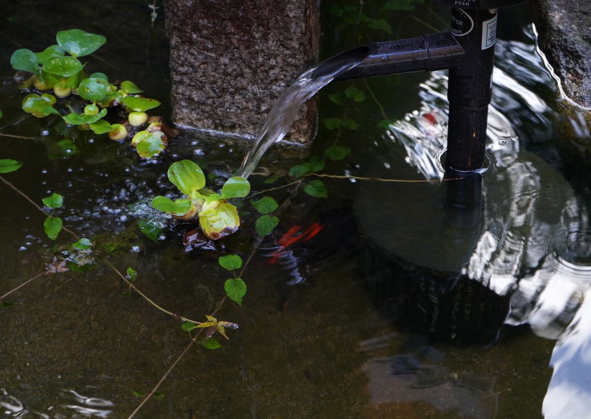 池には清水が流れ込み、金魚の泳ぐ姿も。この池を取り囲むように4〜5軒のお店が並びます。