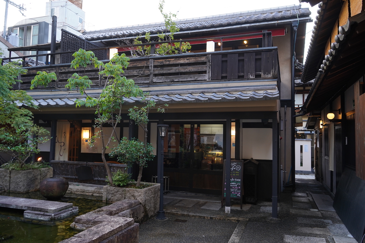 今回ご紹介する「祇をん ひつじカフェ」は、この「祇園楽宴小路」の中の一軒。2階建の町家を利用し、1階はカフェ、2階は気軽に利用できるおばんざい屋さんになっています。