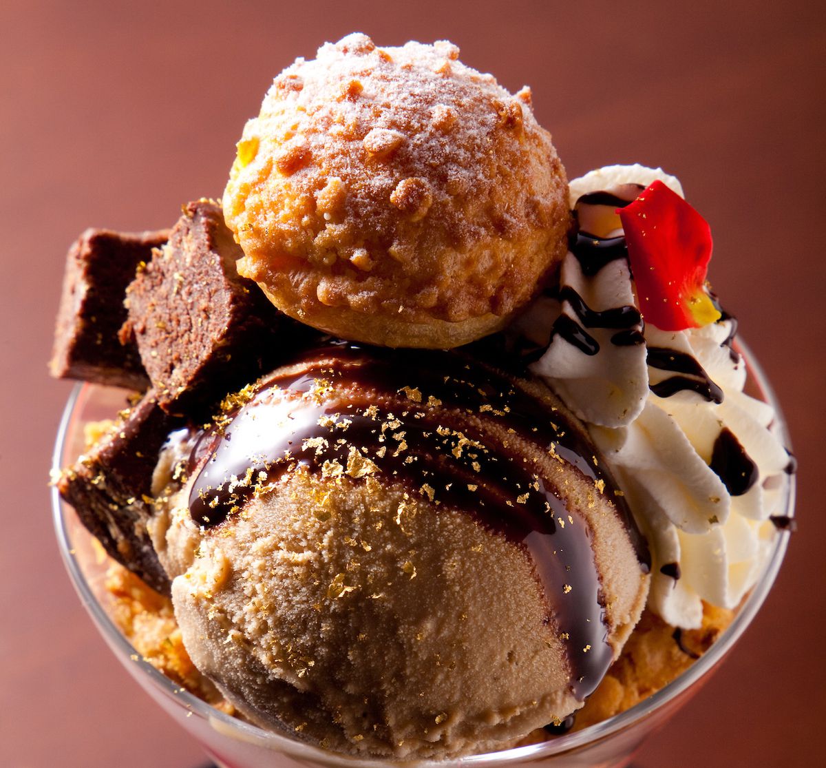カップの底のオレンジの皮で香りづけしたゼリーは甘さをかなり控えてあり、後味はさっぱり。かなり完成度の高いパフェに仕上がっています。祇園のお店らしく、アイスには金箔がかかっていて、高級感あり。それでいて、お値段が1000円。お値打ちすぎて驚きです。