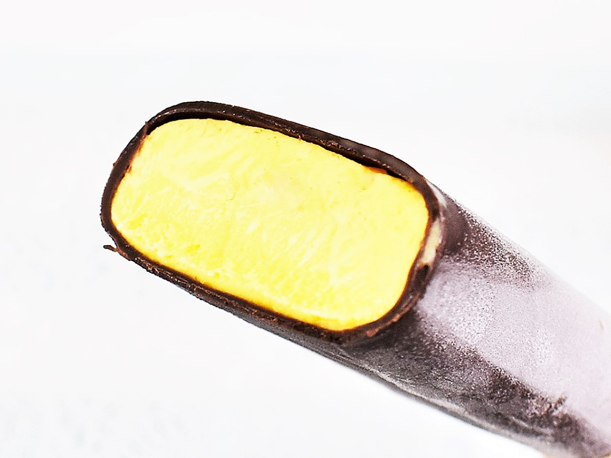 チョコレートの中に包まれているのは、色鮮やかなオレンジアイス。爽やかな酸味と、しつこくない甘さ。とろけるような歯ごたえも魅力的で、パリパリのチョコレートとのコンビネーションは最高でした。