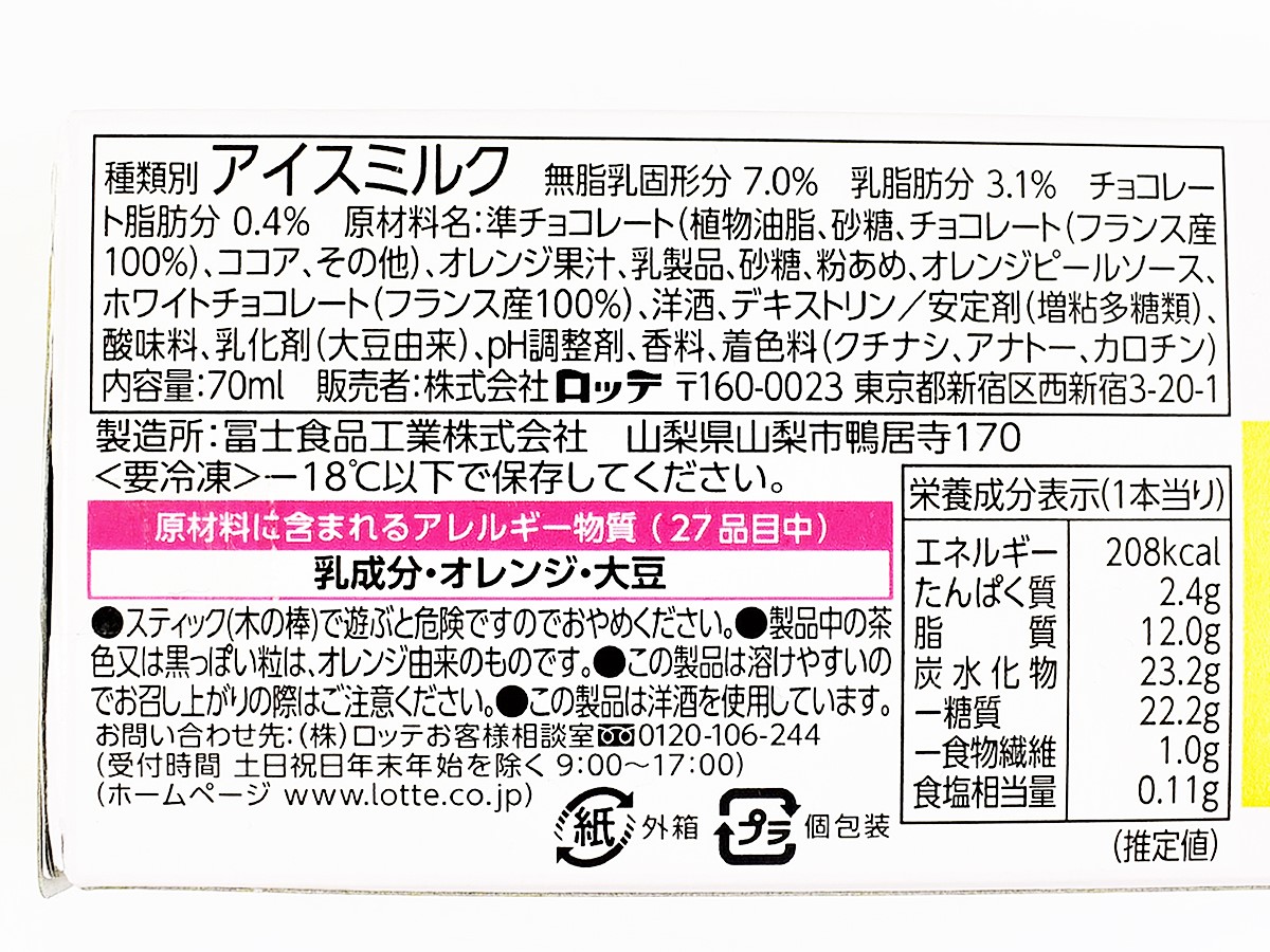 チョコとオレンジアイスは、味の相性も、もちろん相性抜群。チョコの濃厚な甘さがオレンジアイスの酸味を引き立て、バランスの取れた絶妙なテイストに。アイスの中に入ったオレンジピールのほのかなコクも、ほどよいアクセントになっています。