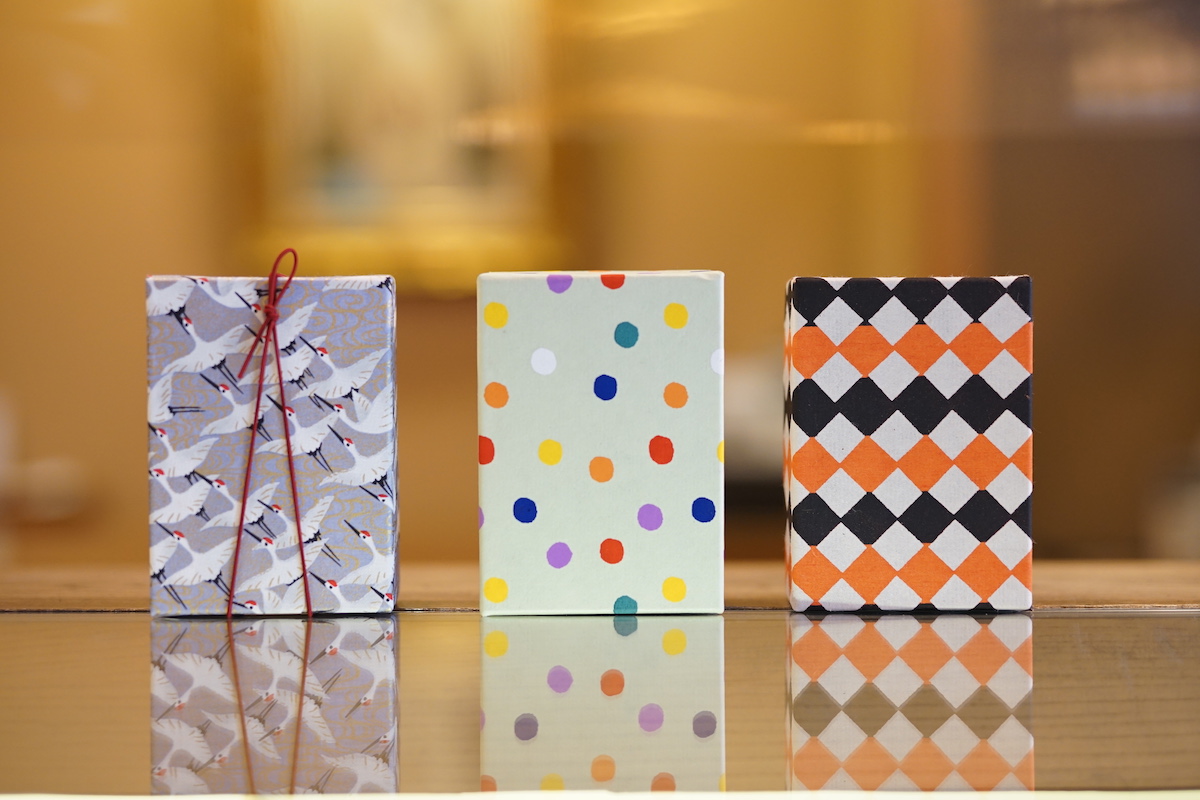 昭和 22年、京都の祇園にて創業した五色豆・甘納豆の専門店「十六五(とうろくご)」。素材の味を生かしたお菓子はどれも上品なおいしさで、ファンも多い名店です。そんな十六五では、贈り物用としてすてきな小箱に入ったお菓子をラインナップ。色とりどりの千代紙で包まれたかわいらしいルックスに惚れ惚れします。