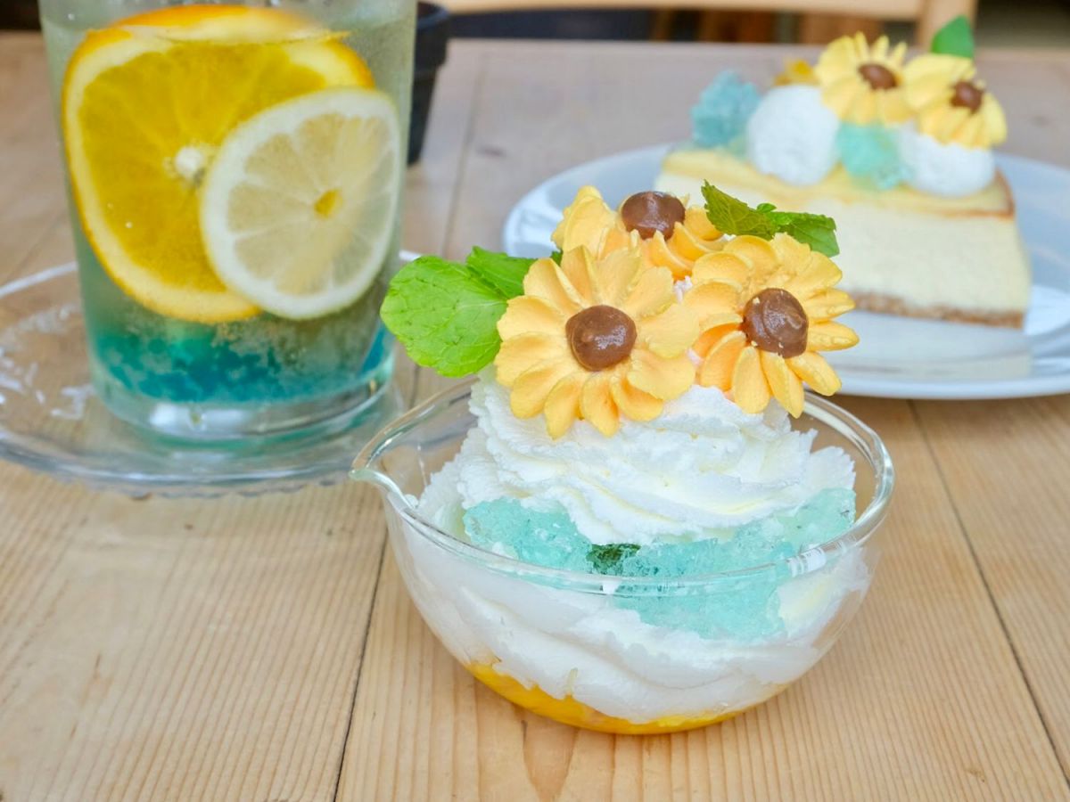 ほっとひと息つけそうなこちらのカフェでは、夏らしさを感じるキュートなひまわりモチーフのスイーツを期間限定で販売中。今回は2つのおすすめメニューをご紹介します!