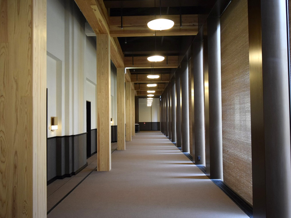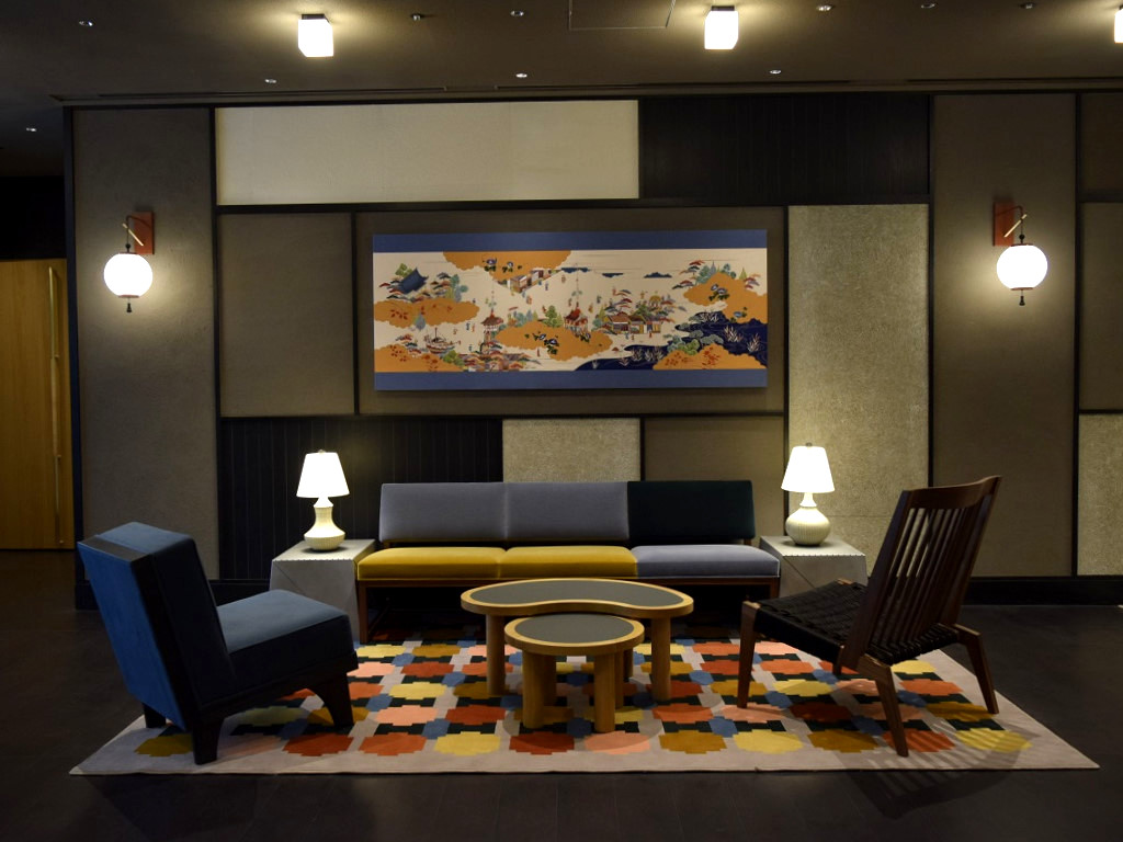 内装デザイン監修はコミューンデザイン、建築デザイン監修は、建築家・隈研吾氏が担当しました。ロビーの天井には京都の杉を使った木が組まれ、無数の照明がきらめいています。ホテルのコンセプト、「East Meets West」のとおり、ハイセンスな東洋と西洋のフュージョンが感じられます。