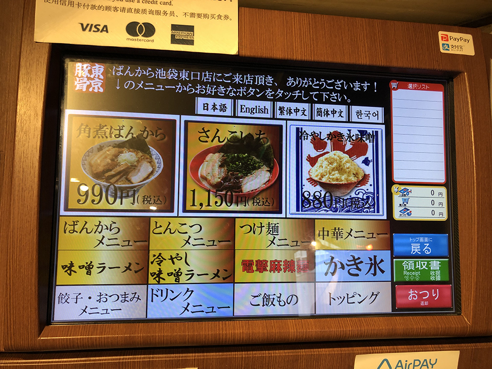 券売機には、おなじみのかき氷のれんをバックにしっかりとラインナップされています。