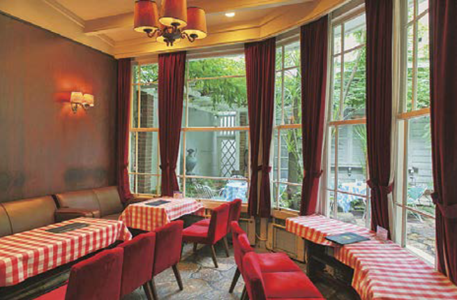 旧館は、赤チェックのテーブルクロスが目を引くレトロな雰囲気。本館ホールは、テラス席もあり、開放感たっぷりで、常連さんも多いようです。朝食なら、ロールパンセット(900円)やフレンチトースト(600円)もおすすめ。