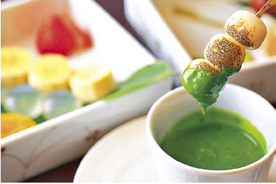 濃厚抹茶チョコソースをお団子につけていただく、注目の和フォンデュ