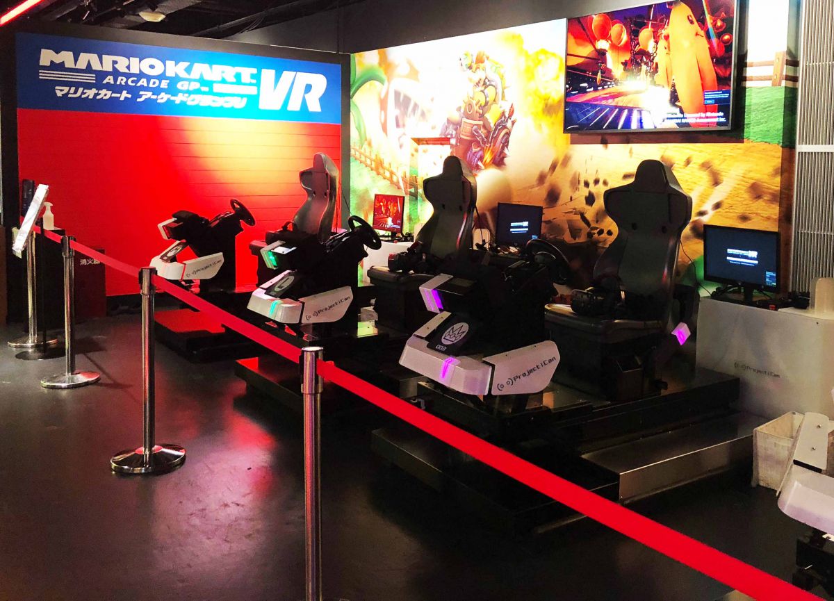続いては、言わずと知れた人気ゲーム・マリオカートに参戦できる『マリオカート アーケードグランプリ VR』へ!