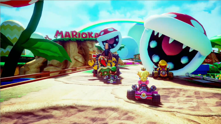 人気キャラクターたちとマリオカートのレースに参戦