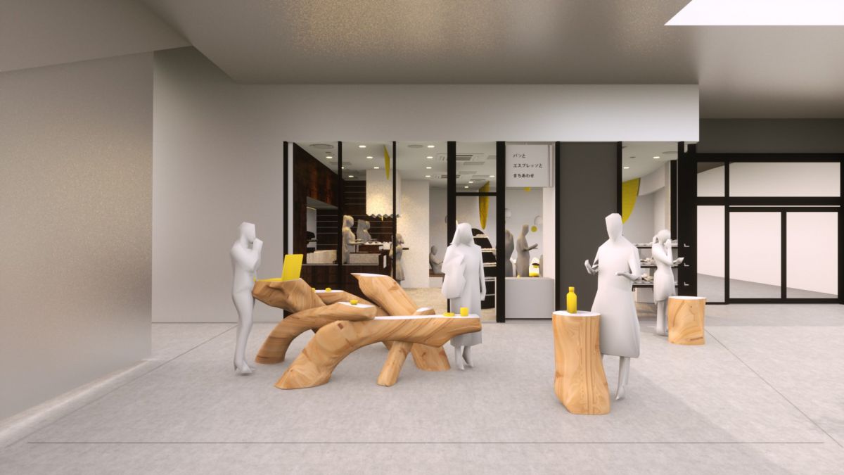 『パンとエスプレッソとまちあわせ』のテラス席には、たまごにちなんで「Torinosu(とりのす)」と名づけた、カウンター席にもなる印象的なオブジェが登場。そのままでは捨てられてしまう飛騨のいびつな木材を、最新のテクノロジーを駆使して活かした、一点ものです。