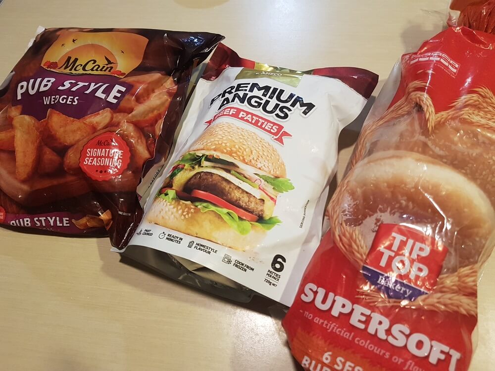 ハンバーガーセットの材料を準備していきましょう。必要なものは、全て、地元のスーパーマーケット、カウントダウン(Countdown)で手に入ります。