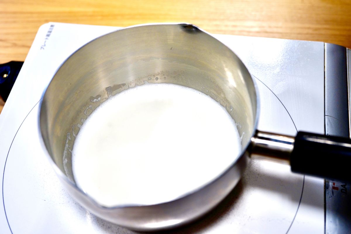 鍋に砂糖を入れ、牛乳を少しずつ加えながら溶きのばします。