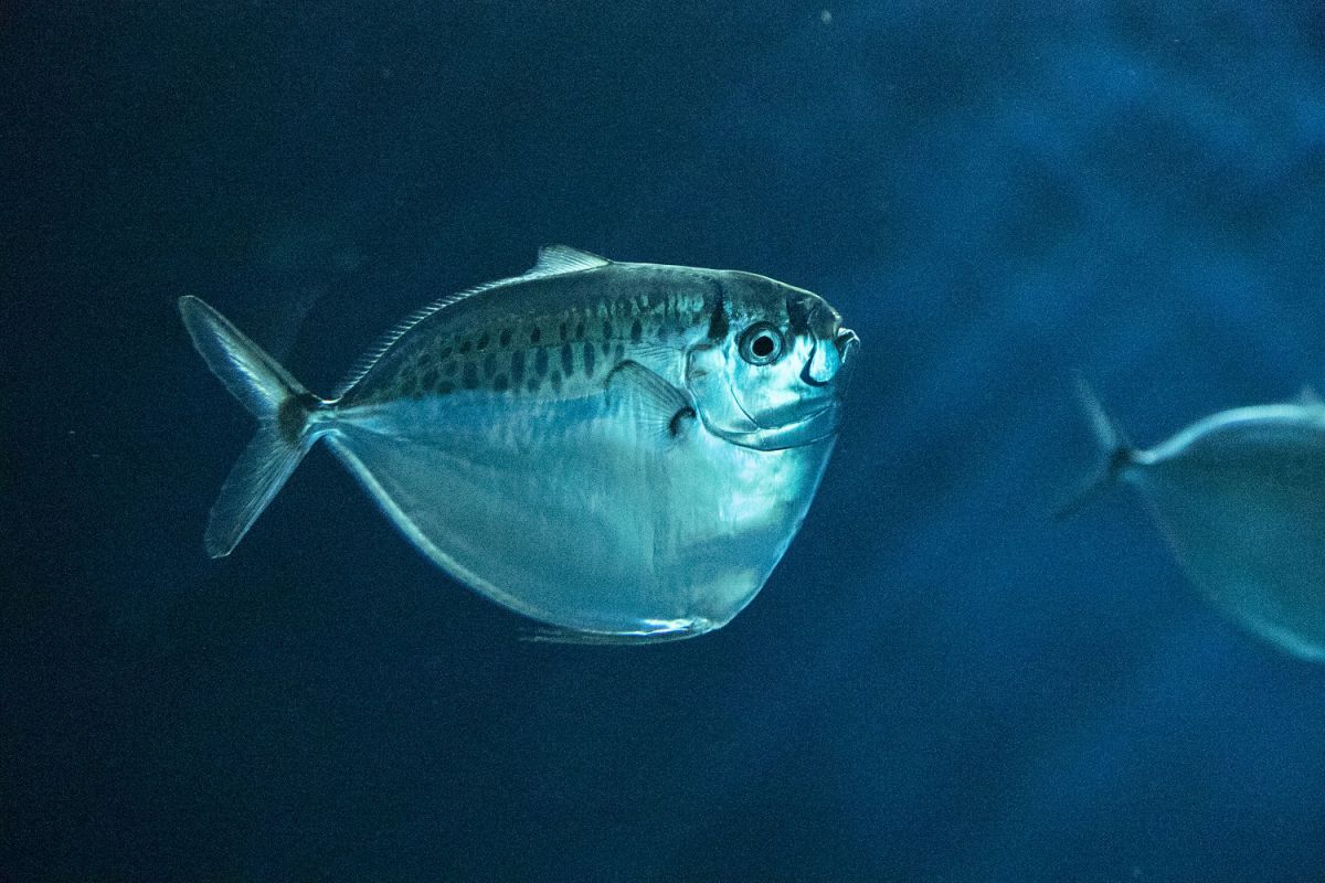 【ギンカガミ】私がとっても気になったのがこちらのお魚。薄っぺらくて、シルバーの輝きがすごい!鱗がない体表は薄くて擦れてしまうため、水族館で飼育されることがほとんどないレア魚です。