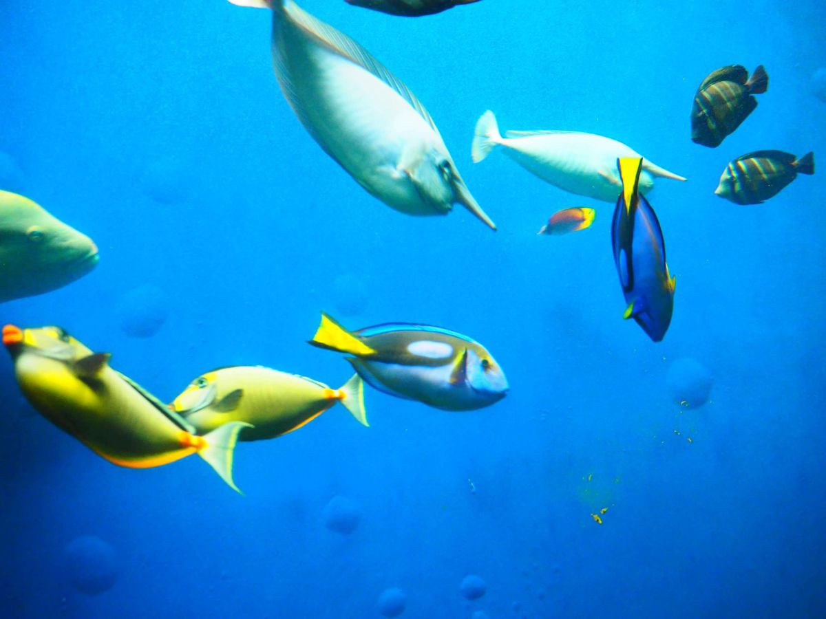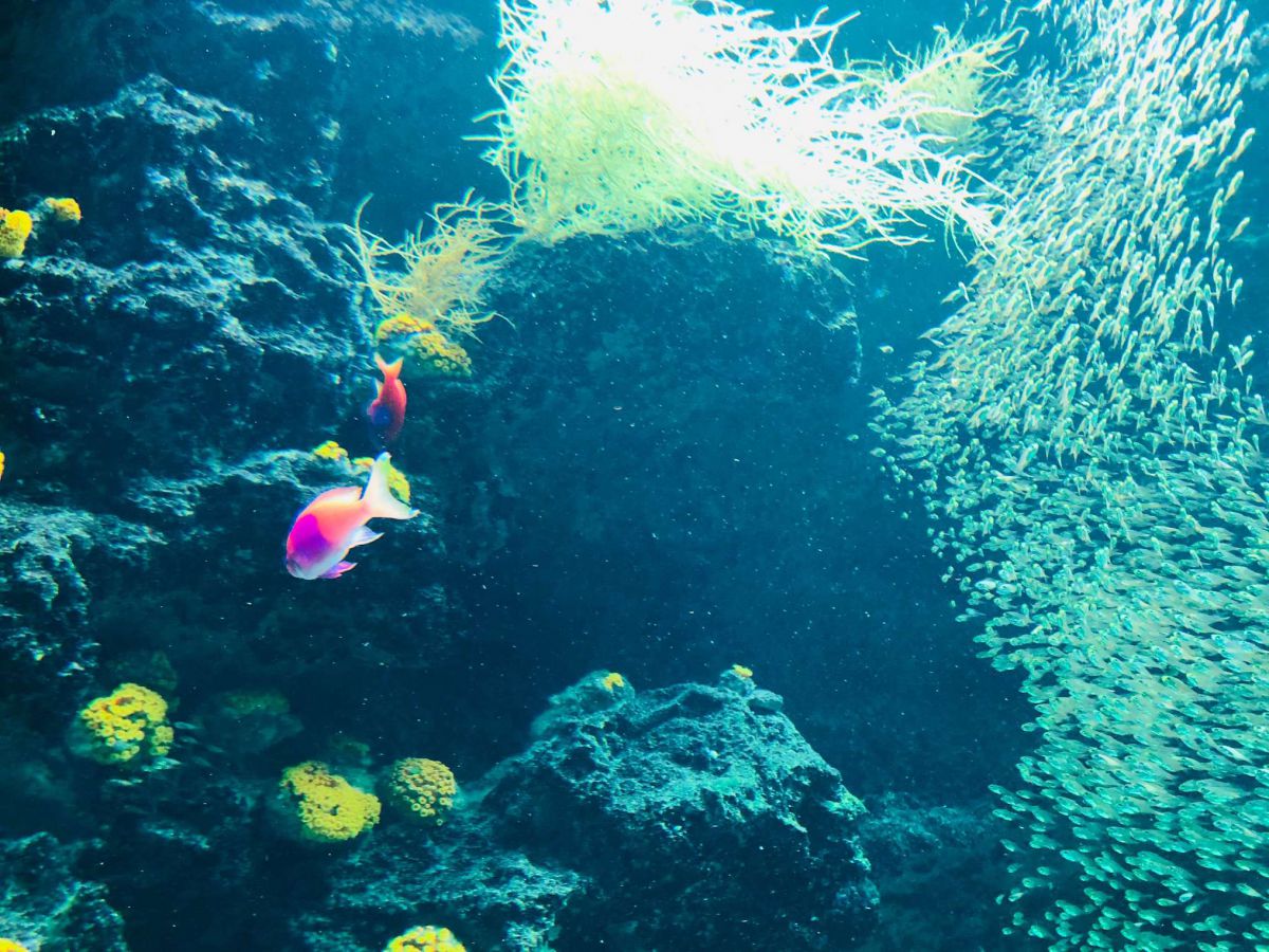 サンゴ礁の海はまさにフォトジェニックスポット!青や黄色、ピンク色とりどりの魚たちが、優雅に泳ぐ姿を見ていると、なんだか水中で一緒に泳いでいるような気持ちになるから不思議ですね。