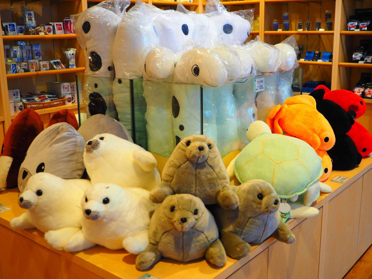 水族館を満喫した後は、エントランス近くにあるおみやげショップ「JOHMON(じょうもん)」で楽しいショッピングタイムを。イチオシはアクアマリンふくしまの仲間たちをモチーフにしたキュートなぬいぐるみです。特につぶらな瞳のチンアナゴのぬいぐるみは、おみやげにもいいかも!