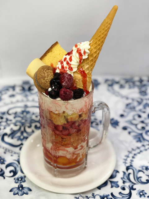 名物を食べずには帰れない!?ジョッキに入ったボリューミーなパフェに挑戦しよう
