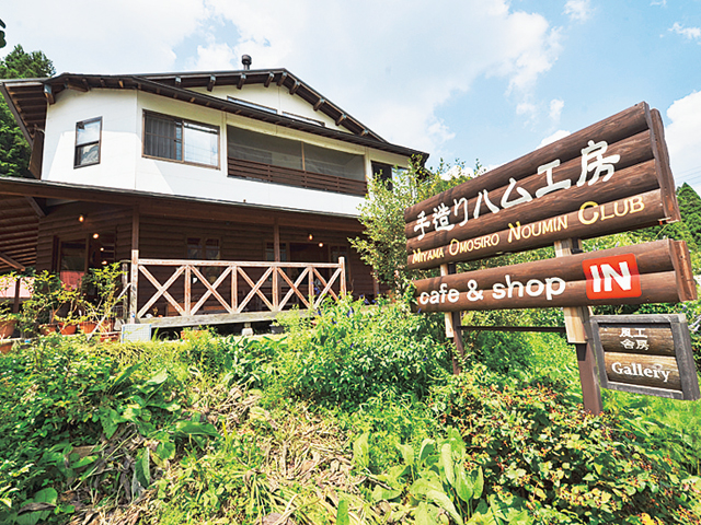 「美山おもしろ農民倶楽部」では、美山のおいしさがつまった加工品を製造販売しています。京都産の豚肉や鶏肉を使ったソーセージやベーコン、ハム、パンチェッタなどはすべて無添加。ひとつひとつ丹精込めて作られた製品はおいしさだけでなく安全性もバッチリです。京壬生菜や九条ネギなどの京野菜入りソーセージや、地元の鹿肉を使ったサラミなどの変わりダネは、おみやげにもピッタリ。カフェも併設されているので、ソーセージやハムはその場でいただくこともできます。