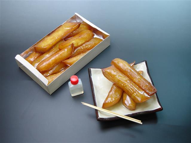おイモ一筋60年以上のイモ菓子専門店「嶋屋」は、行列もできる人気店。イチオシは、「あべのポテト」という大学イモ。わざわざ遠方から買い求める人もいるという自慢の商品です。自家農園で栽培した高系14号というイモを、綿実油で20分じっくりと揚げてから、特製蜜をたらり。蜜が染みこんだイモは、ふっくらしっとりした食感で、上品な甘さが口いっぱいに広がります。ひとくち食べると止まらなくなるので、いっぱい買うのも良いけど、食べすぎにはご注意を!