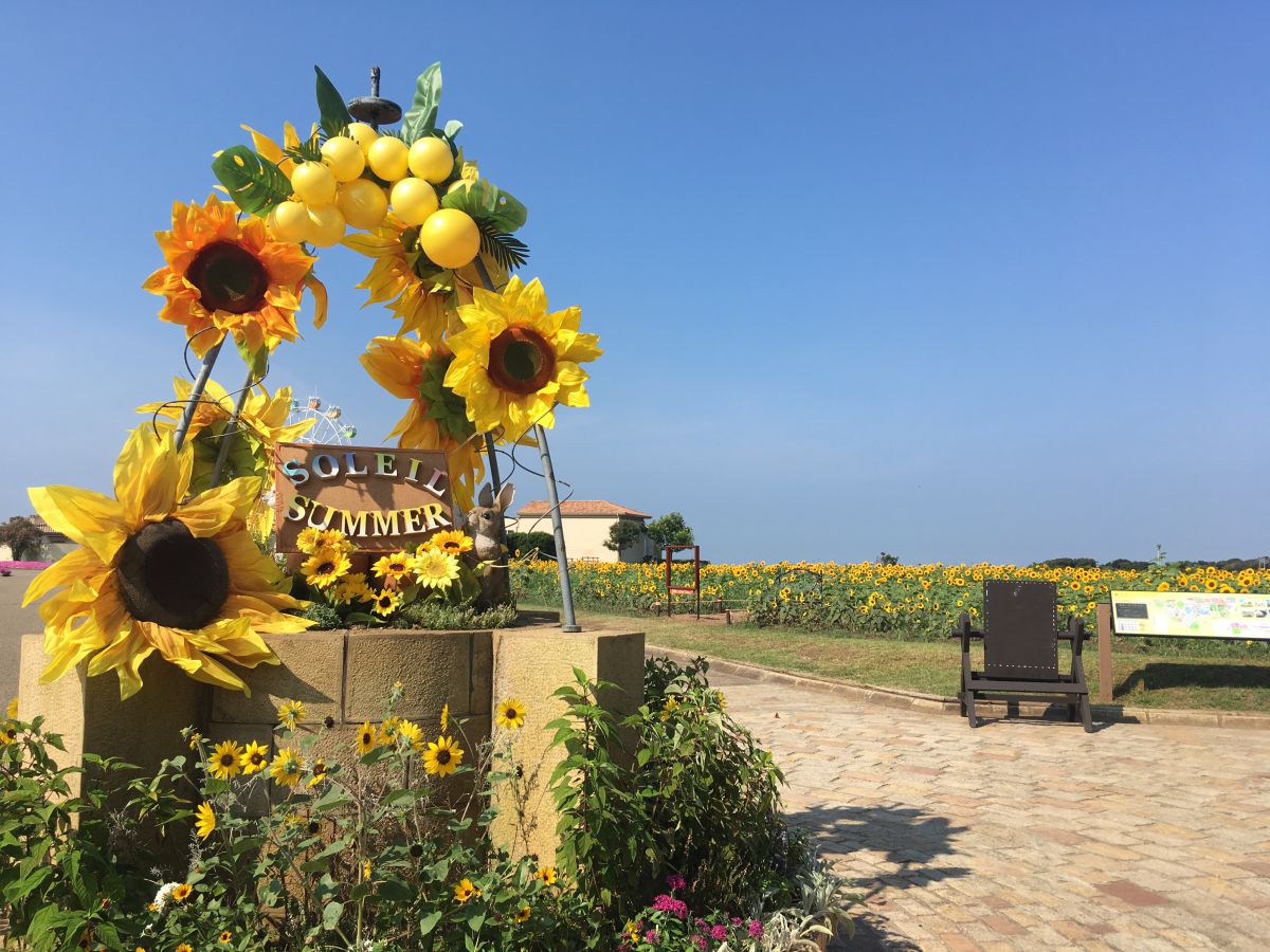 7月中旬から開花しているソレイユガーデンの「サンフィニティ」というヒマワリとともに、「ソレイユの丘」のヒマワリは8月末まで見ごろを迎えています。そしてなんと、入園無料。これは、見逃せませんね!