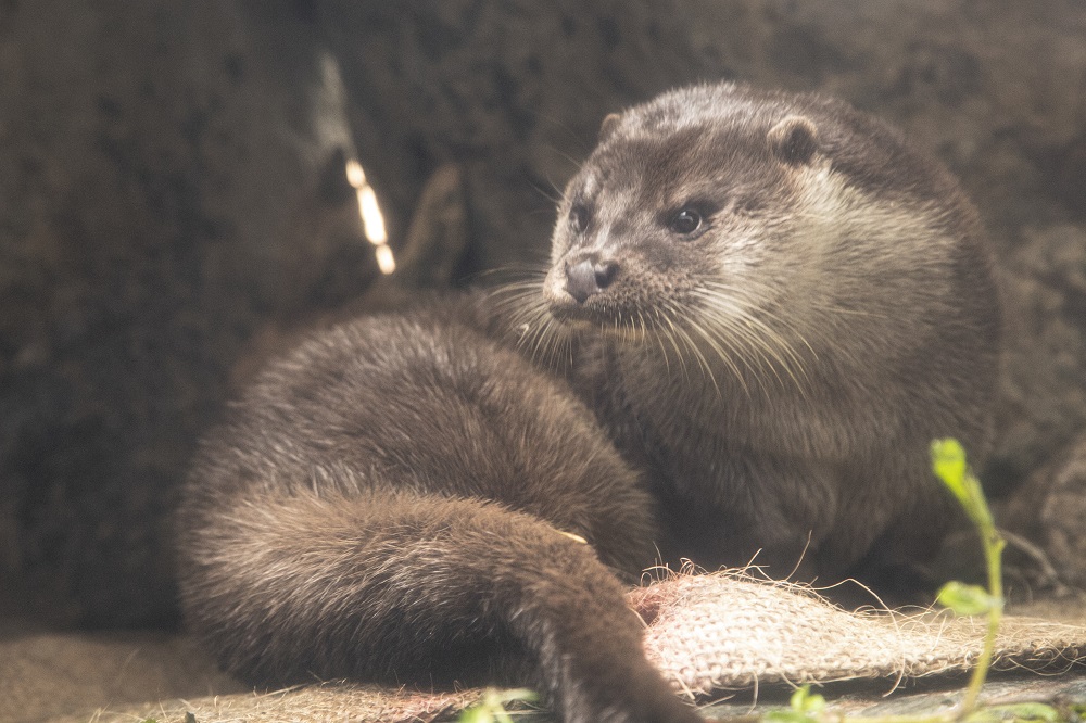 ユーラシアカワウソは川辺にすむ泳ぎが大変得意な動物で、手足の指の間には水かきがあります。また体が平べったい形をしているので、水の抵抗を受けにくく、水中をとても素早く泳ぎまわることができます。泳いだり、走ったり、そしてゴロゴロと寝そべったり…。6頭の仲良しファミリーの様子を、「カワウソたちのお母さん」である飼育員さんのお話をお伺いしながら観察しましょう。