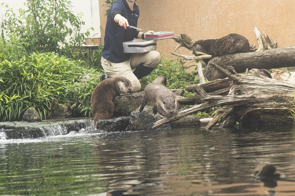 「カワウソのふち」でカワウソファミリーの餌やり紹介
