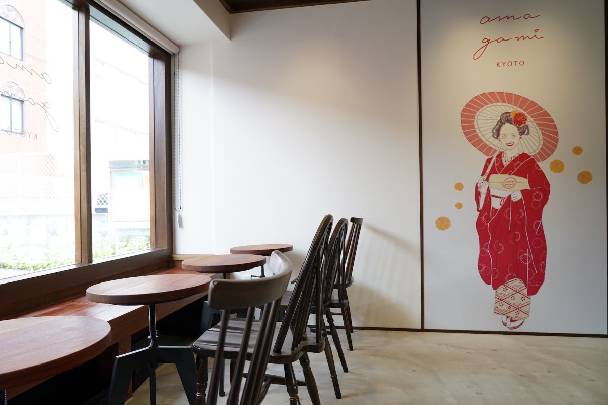 「かわいすぎて食べられない〜」とSNSでも評判のシュークリーム専門店「amagami.kyoto」があるのは、オフィス街、地下鉄四条駅の5番出口から徒歩1分。それなのに京都に住んでいる人でもどこ?と迷ってしまう、隠れ家的スポットです。