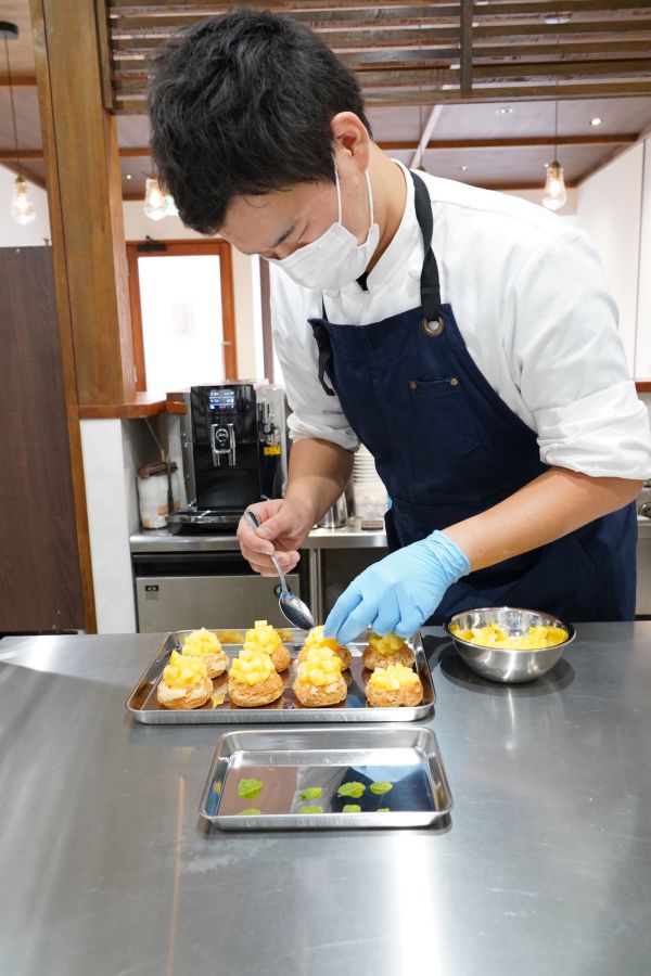 いつもスマートな笑顔で珈琲を淹れる岡田氏、実は甘いものが大好きで、なかでも一番好きなのがシュークリームなのだとか。その岡田氏が出会ったのが、才能にあふれる若きパティシエの駒井惇希(こまいあつき)さん。