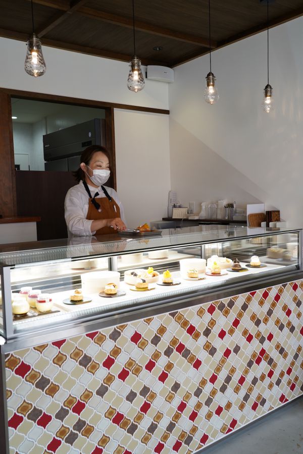 店内に入ると正面にあるのは、かわいいモロッカンタイル貼りのショーケース。見た目ビューティーなだけではなく機能的で、表面のガラスに冷風が送られてケース内がいつもクリアに見通せるようになっています。