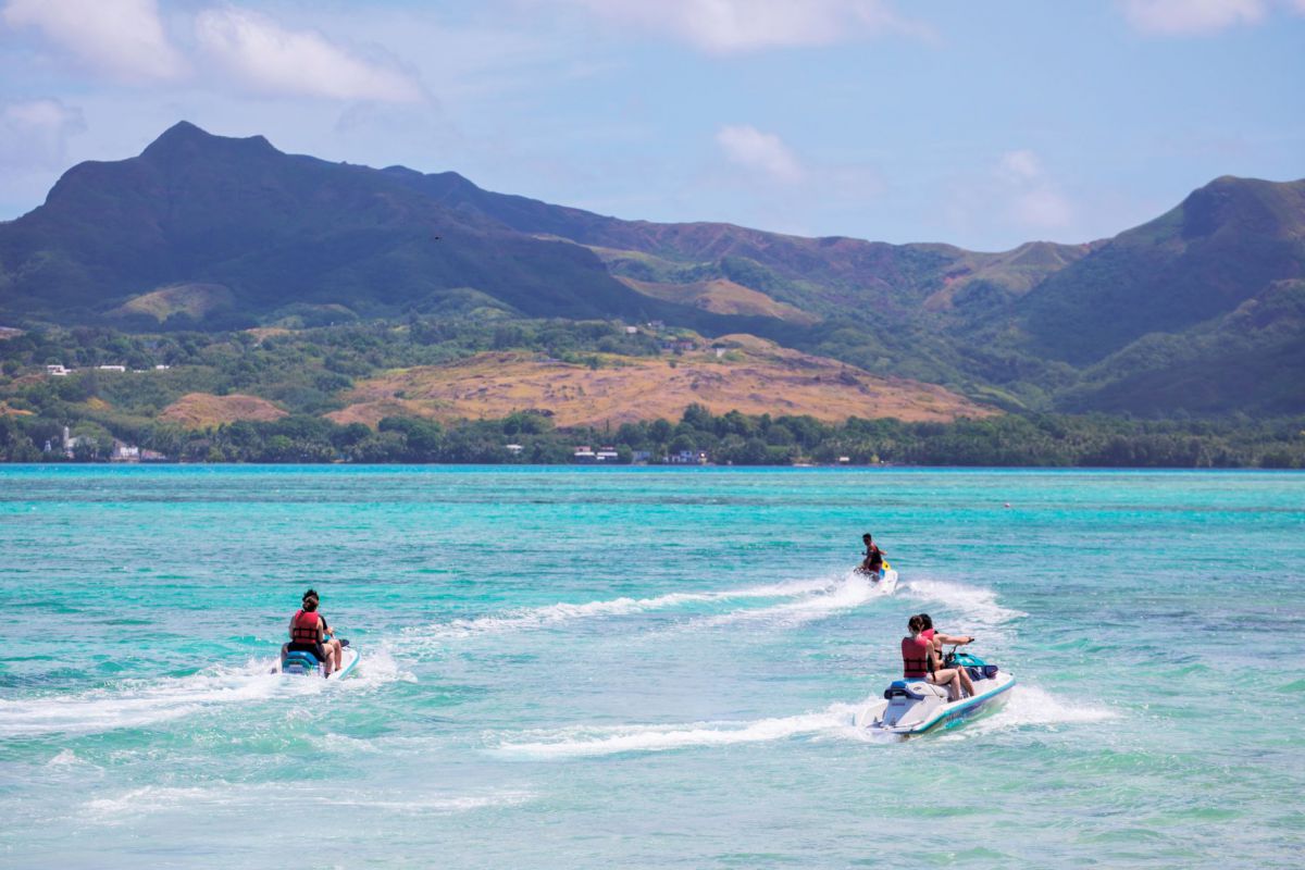 「ジェットスキー」は座って乗るタイプ。ココスラグーンをクルージングします。グアムでは免許なしでの体験がOK。