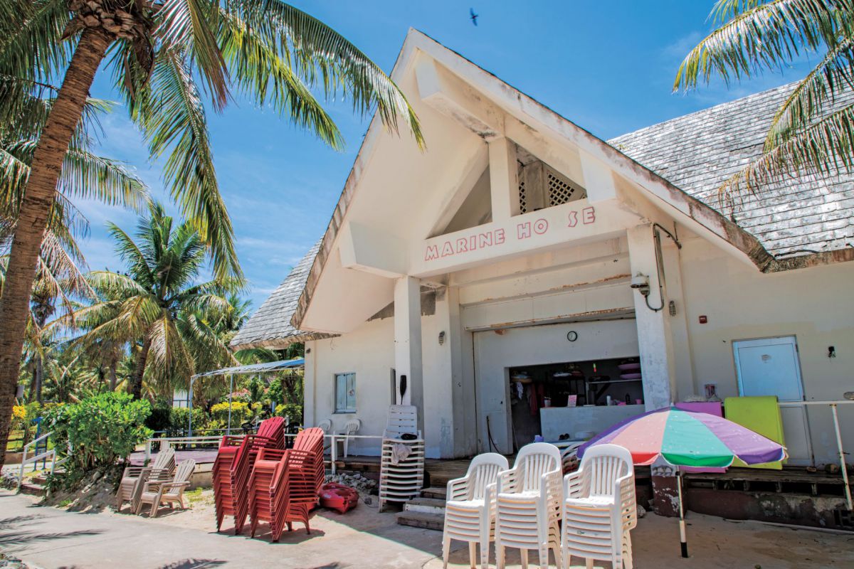 こちらのマリンハウスでは、浮き輪やビーチパラソルなどのビーチグッズがレンタルできます。ビーチサイドカフェ(ココ・カバーナ)も併設。