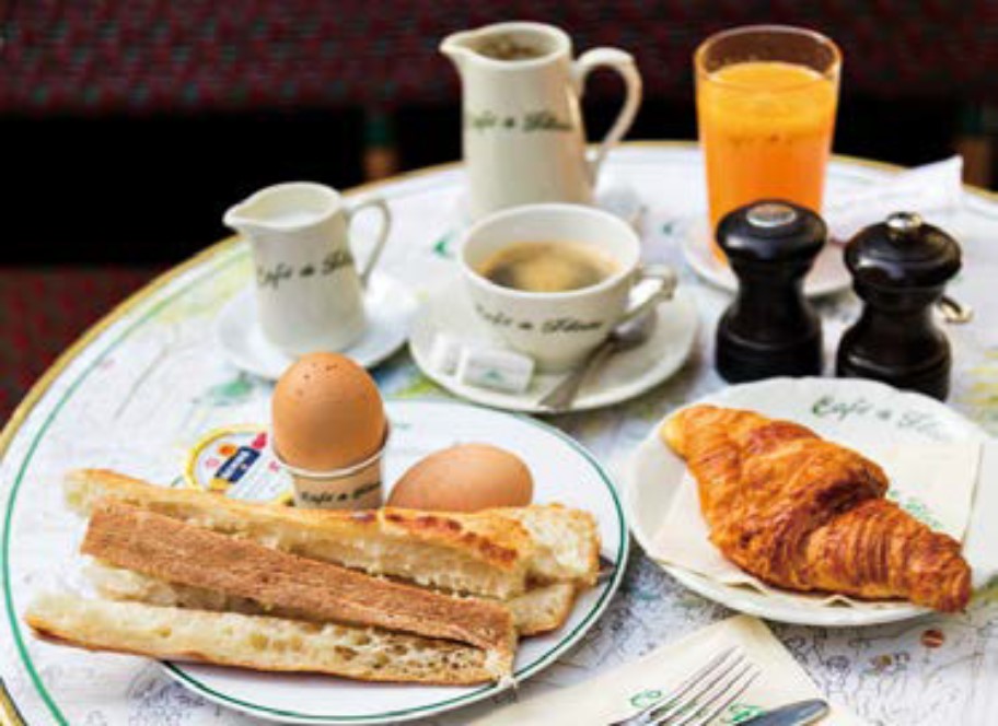 朝食にはオレンジジュース(€8)、ゆで卵とパン(€13)などが人気です。こんなカフェで朝食を楽しめば、充実した1日になること間違いなしです。