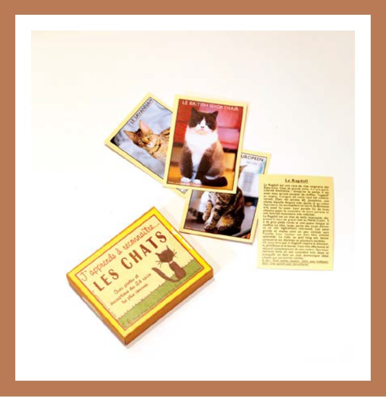 フランスのさまざまな猫の品種を紹介するキュートなカードセット(€6.9)は、バラマキ用のおみやげにぴったりです!