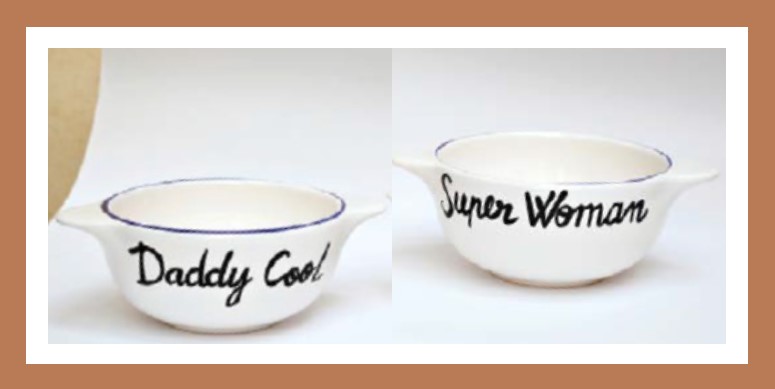 ブルターニュ地方産のユニークなメッセージ入りボウル(各€22.50)には「Super Woman」、「Daddy Cool」などの文字が。カップル・夫婦へのプレゼントにもぴったりです!