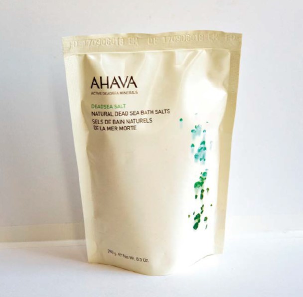 「モノップ・ビューティー」はモノプリ系列のコスメ専門店。プチプラやオーガニックに力を入れています。トイレタリーからメイク用品までさまざまで、パリ市内に6店舗展開中です。写真の商品は『アハバ』のもので、美肌、デトックス効果が期待できるミネラル豊富な死海の塩(€6)。