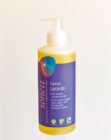 写真のアイテムは有機オリーブ油、ラベンダーの精油を配合した『ソネット』の液体ソープ(€5.70)。