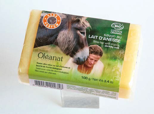 『オレアナ』のオーガニック石けん(€5.36)には、保湿効果が高いと評判のロバミルクが使われています。