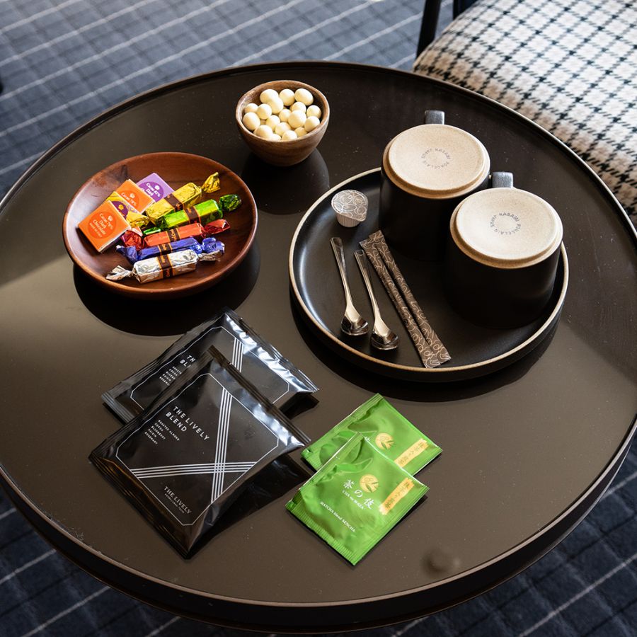 テレワーク専用ルームではシャワー使用不可の代わりに、コーヒーや緑茶、チョコレートなどのスナックが充実しています。