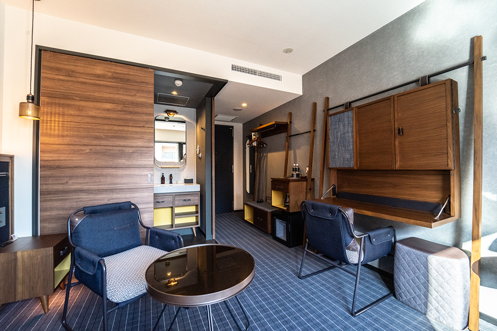 カジュアルでありながら洗練されたインテリアの客室には、なんとホテルのシンボルであるベッドがありません。