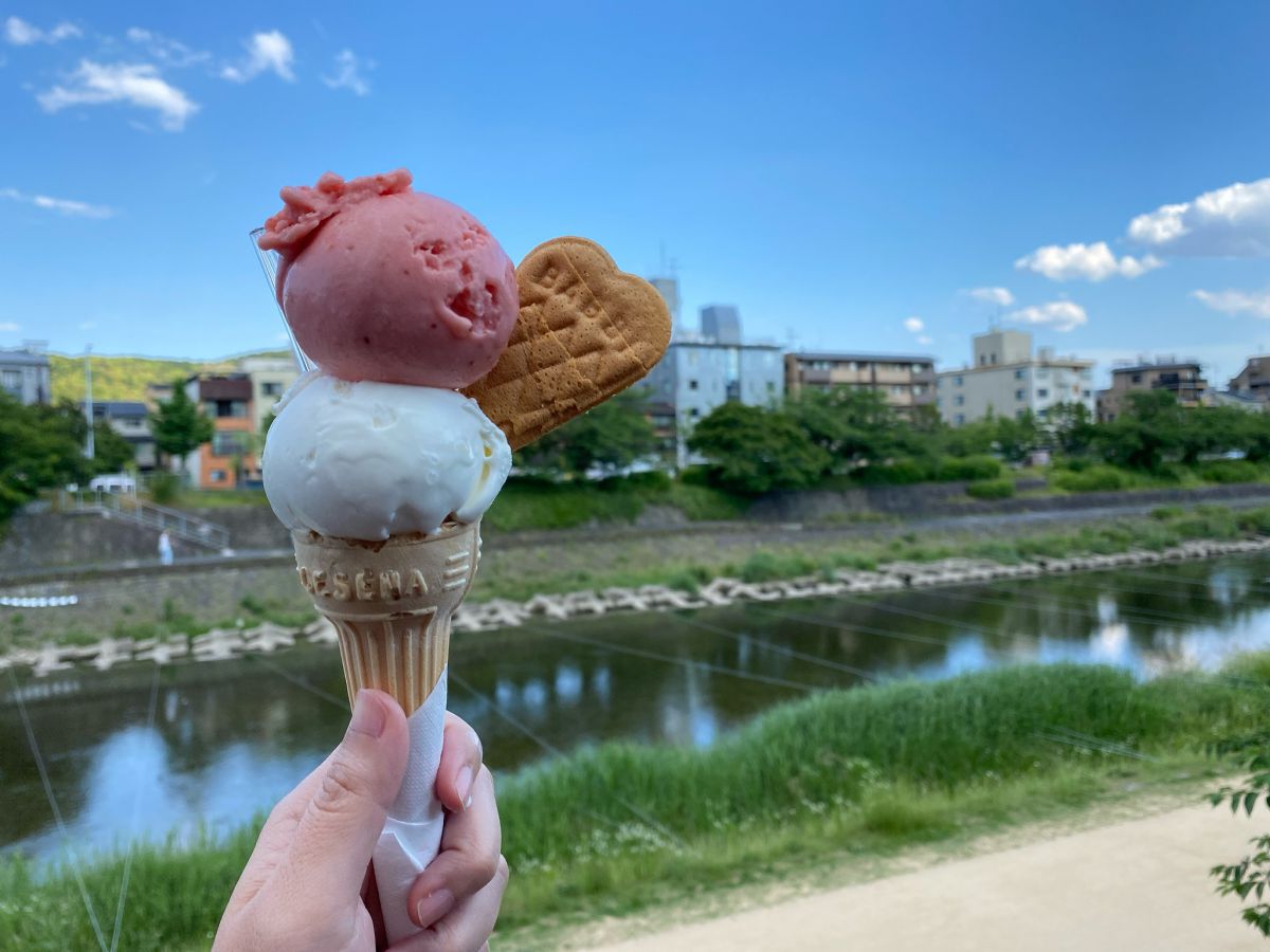 そんな歴史ある鴨川沿いからの眺めは、一見の価値アリ!ジェラートを頂きながらゆっくりひと休みをするのにぴったりです。